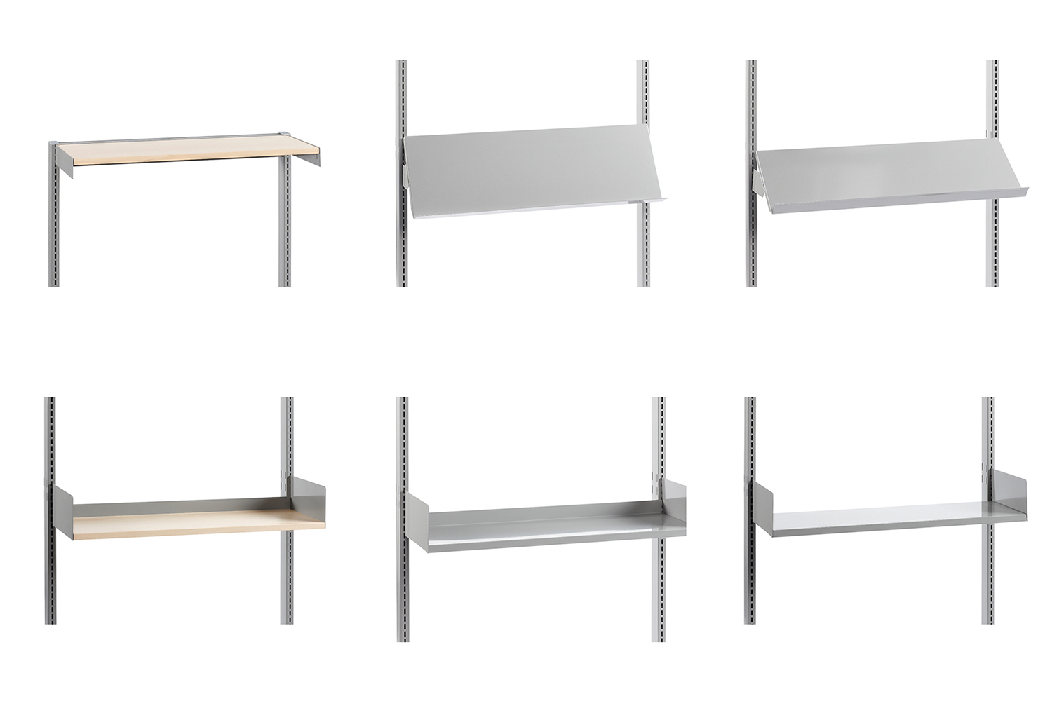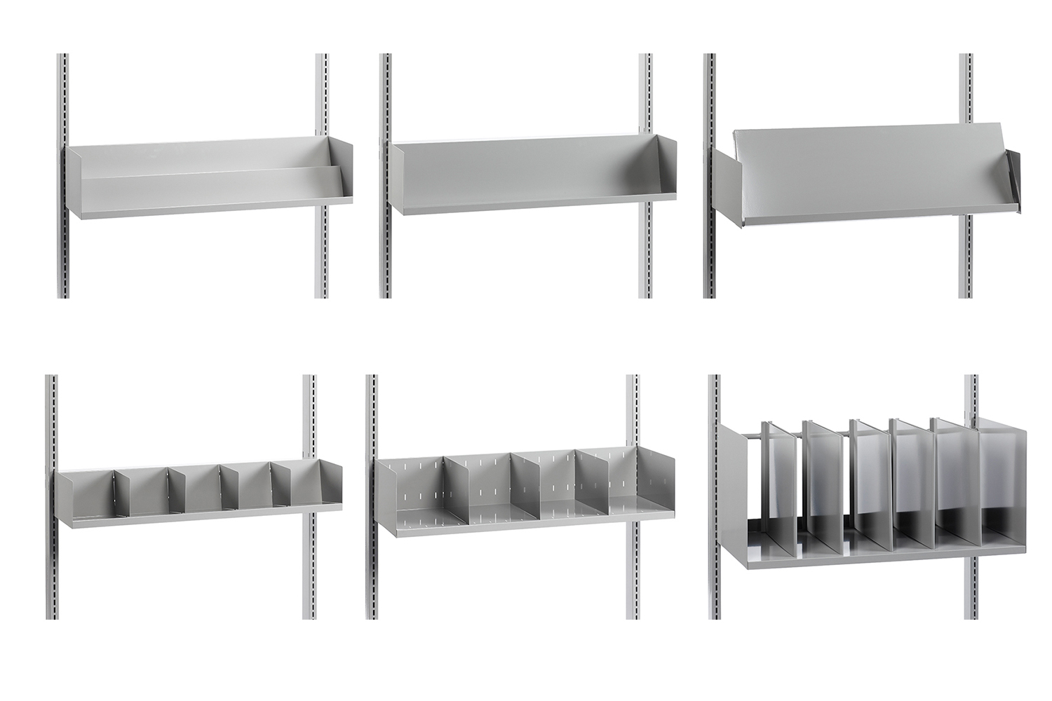 Verschillende legbordtypes en accessoires stellen u in staat om een uniek bibliotheekrek samen te stellen.