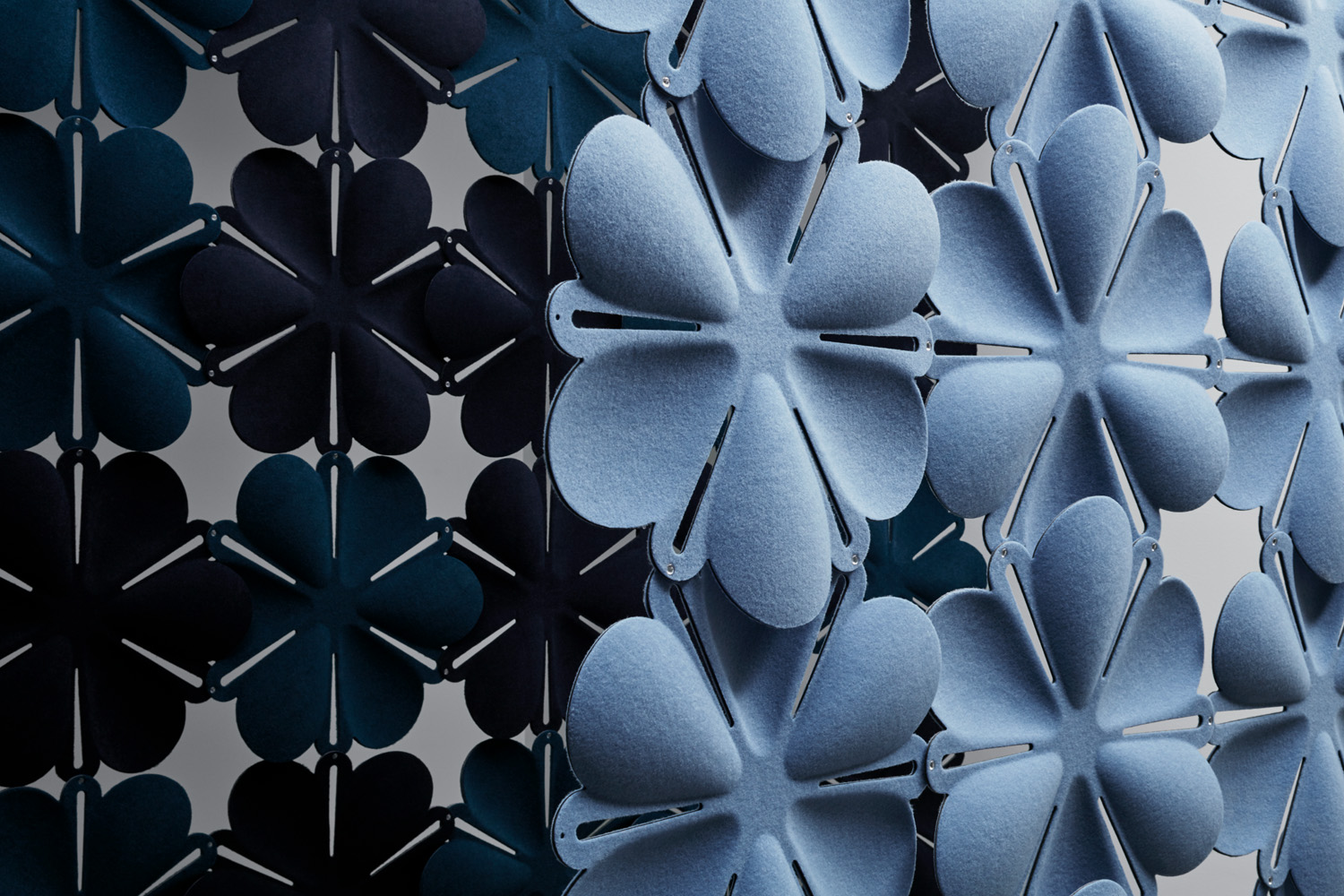 Abstracta's Airbloom, licht en luchtig, dient om dynamische ruimtes en afscheidingen in bibliotheken te creëren en tegelijkertijd de akoestiek te verbeteren. Ze zijn geïnspireerd op natuurlijke bloemachtige modules en worden in elkaar gezet met behulp van kleine kunststof verbindingsstukken.