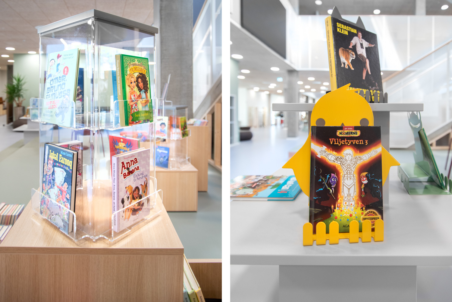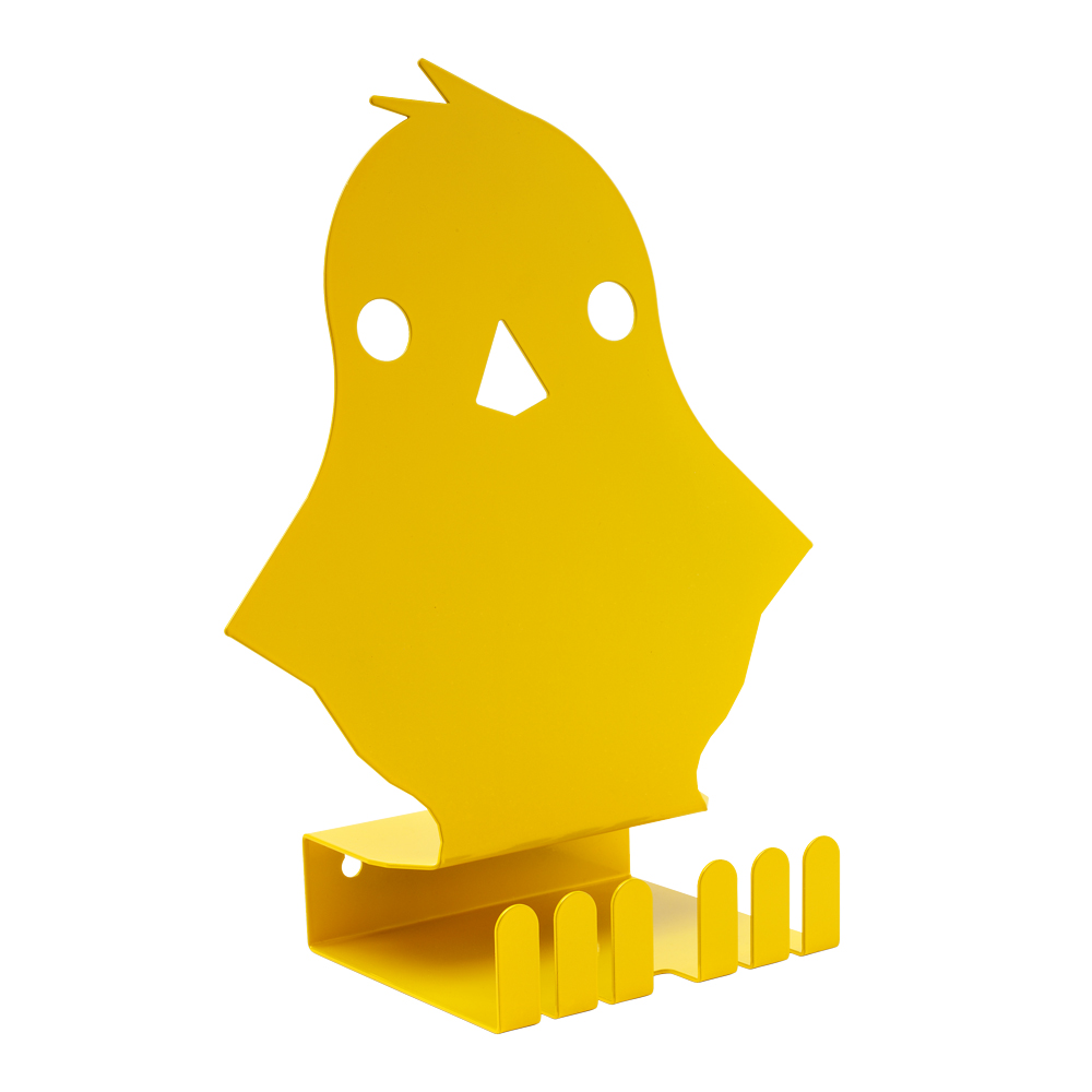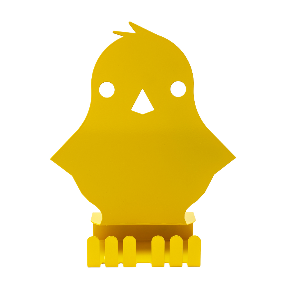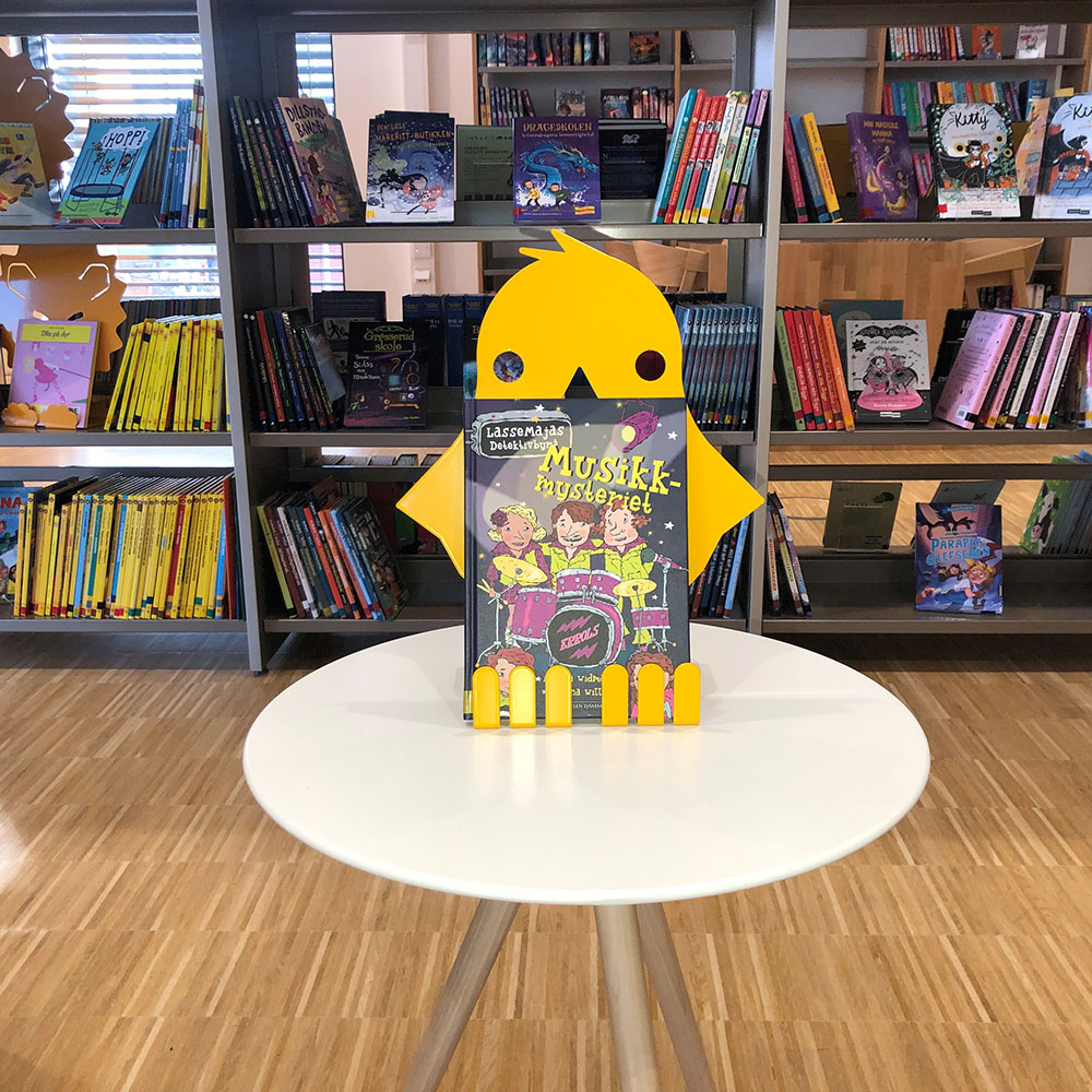 Een decoratieve display - in de vorm van een kuiken - die de lente tot in de bibliotheek brengt.