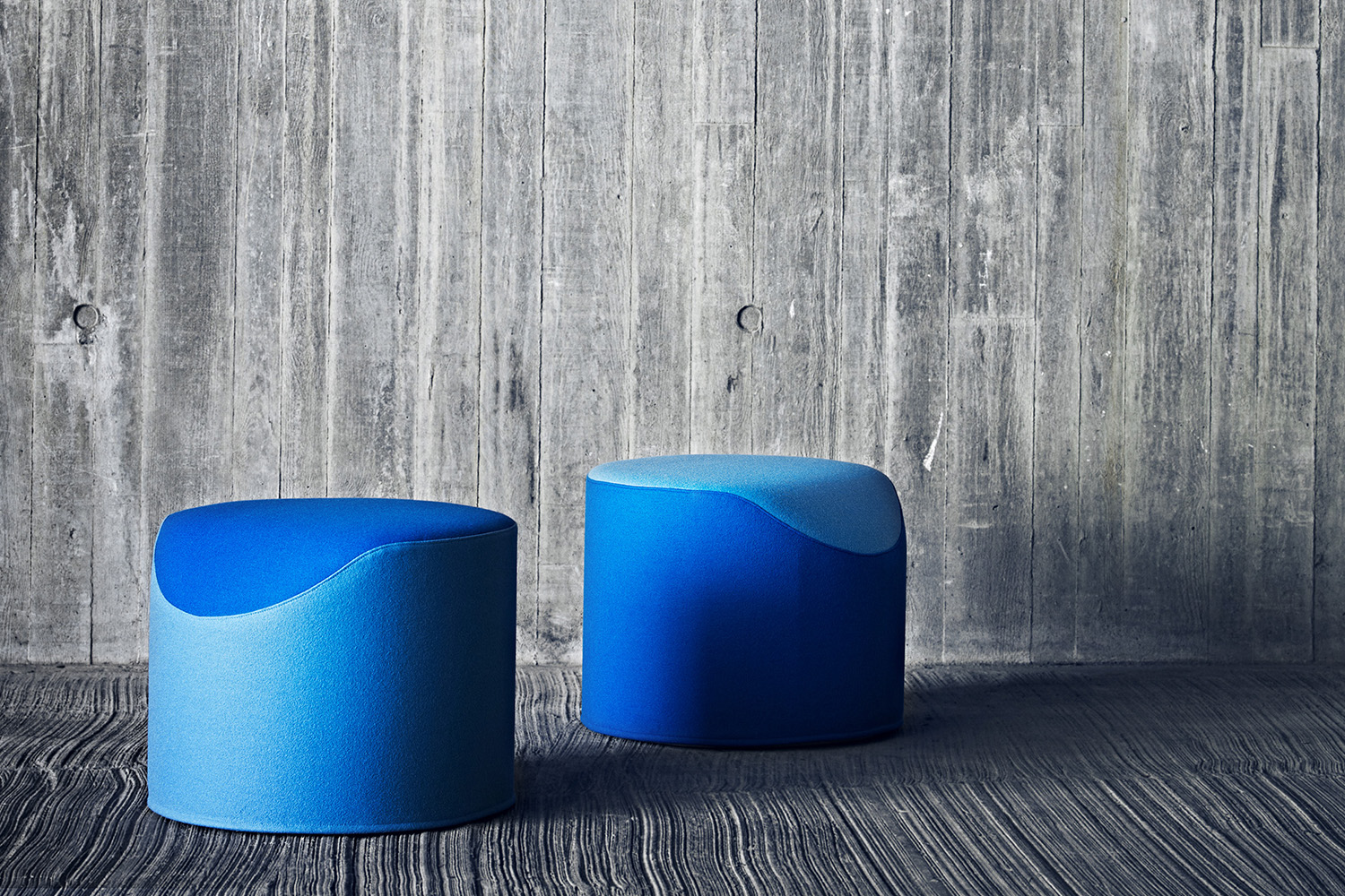 De tweekleurige look en diagonale voering creëren een bijzondere uitstraling die de poef onderscheidt van andere soortgelijke meubels.