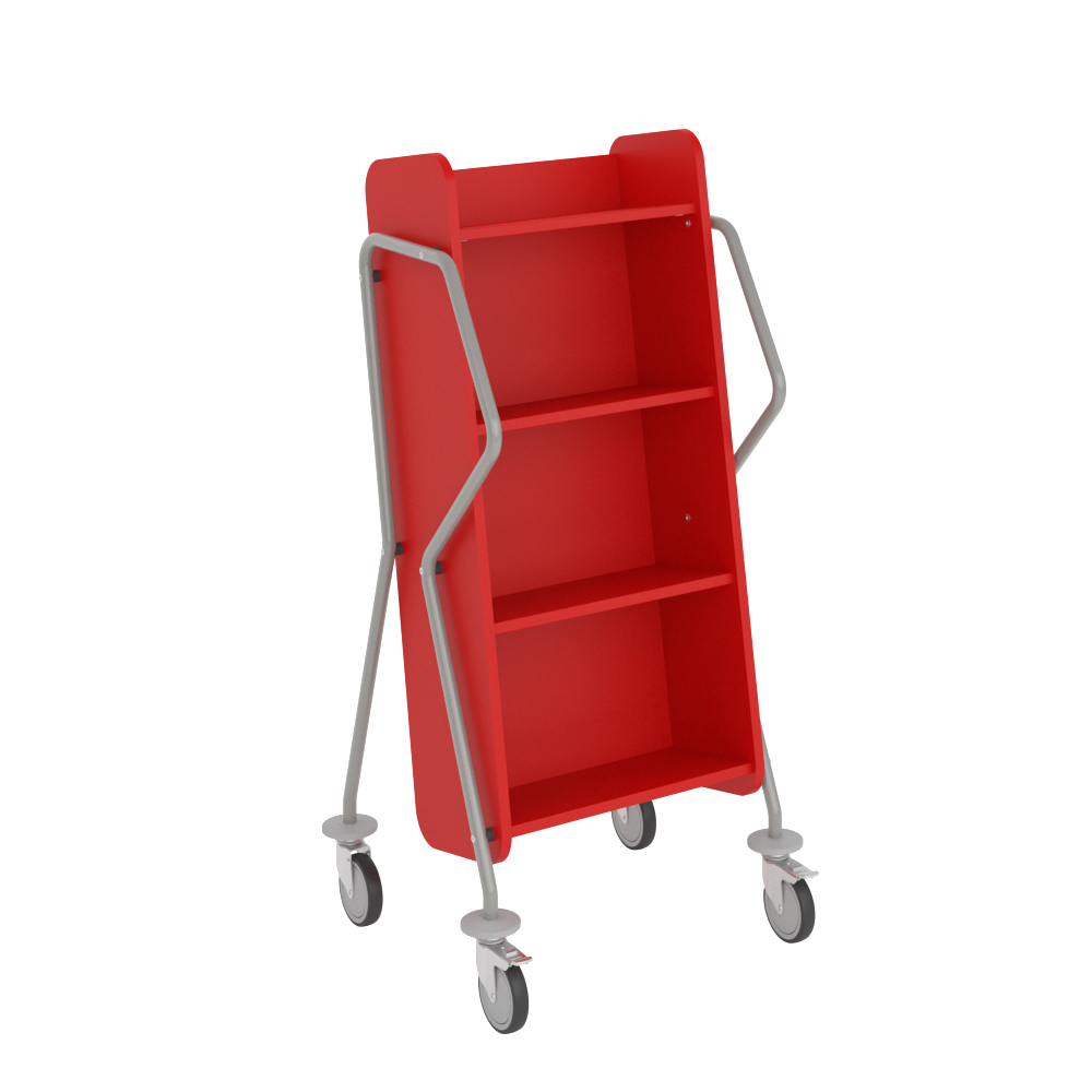 Ergonomische, gebruiksvriendelijke, enkelzijdige boekenwagen met 4 legplanken. Er is een royale ruimte voorzien tussen de planken, ideaal voor grotere boeken.