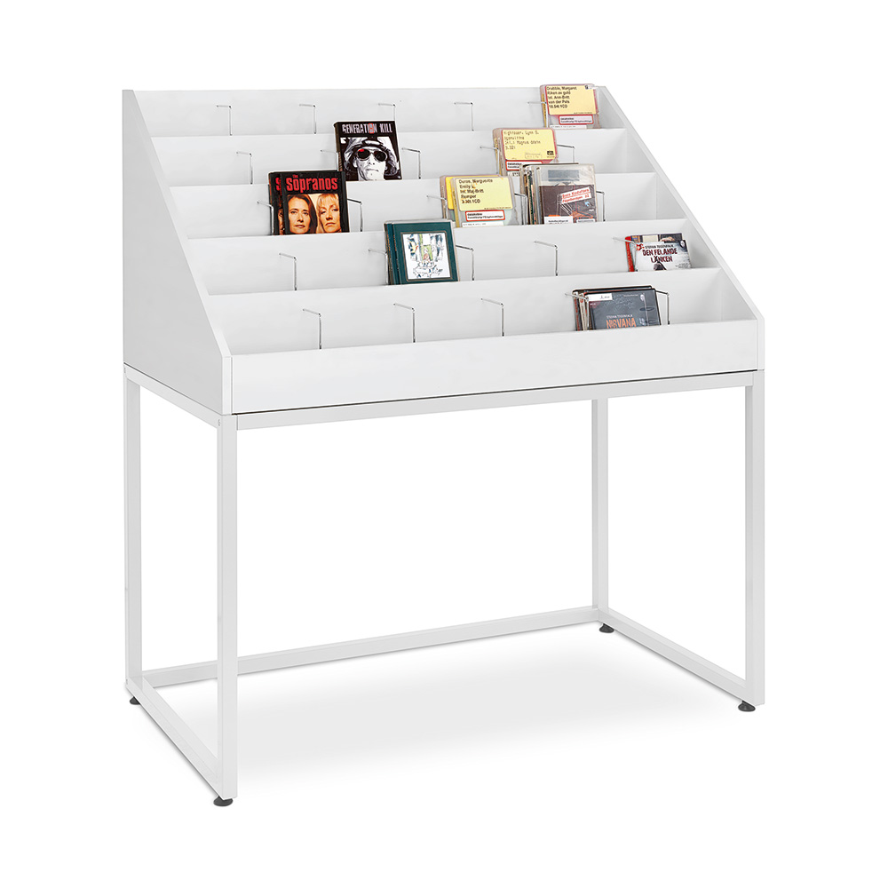 AVM-meubel voor presentatie en opslag van media zoals muziek, films, audioboeken, … op 5 niveaus. Op elk niveau zijn er 6 ruime overzichtelijke vakken.