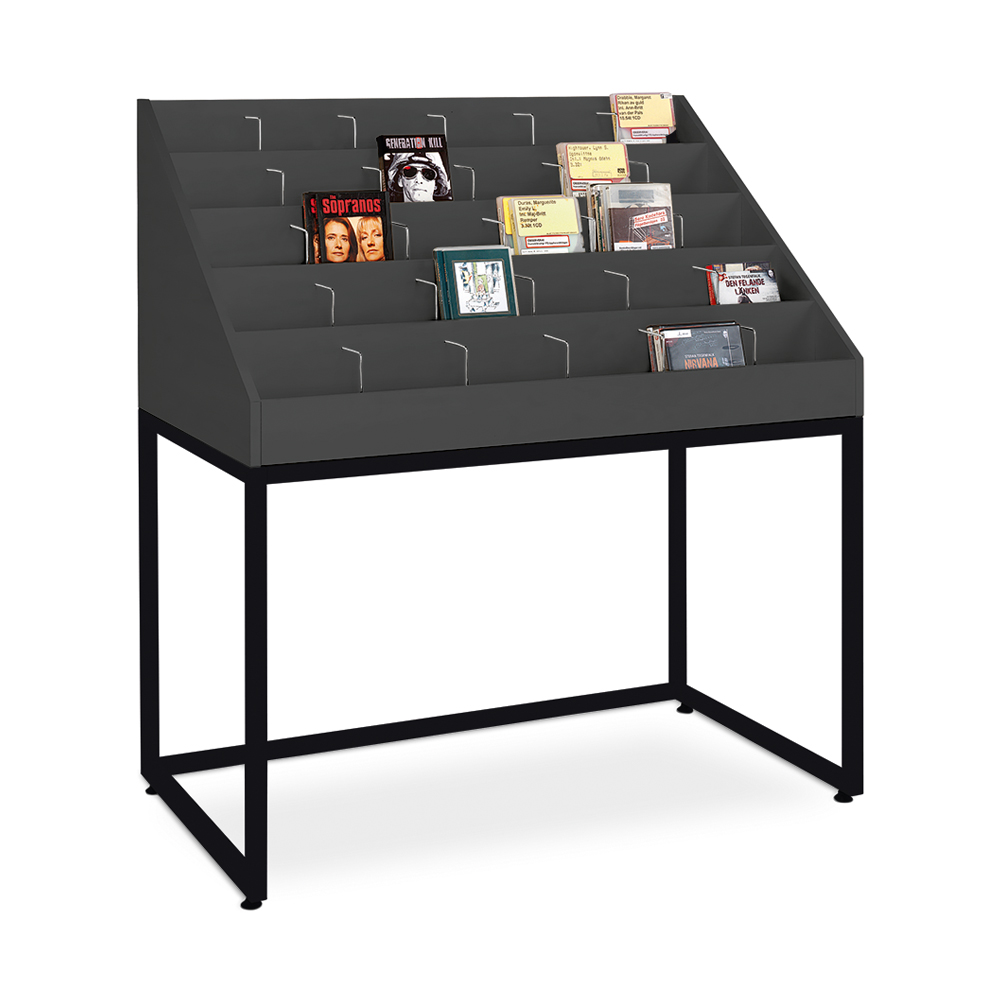 AVM-meubel voor presentatie en opslag van media zoals muziek, films, audioboeken, … op 5 niveaus. Op elk niveau zijn er 6 ruime overzichtelijke vakken.