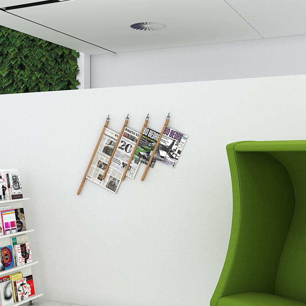 Dit stevige en stijlvolle accessoire is de ideale oplossing voor het organiseren en presenteren van kranten, tabloidformaten en tijdschriften en het creëren van een uitnodigende leesomgeving voor uw bezoekers.
