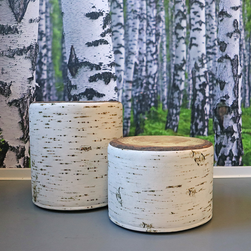 De opvallende stevige maar toch comfortabele en stabiele Floki Tree poefs lijken sprekend op een echte boomstronk en zijn verkrijgbaar in twee hoogtes voor zowel kinderen als volwassenen.