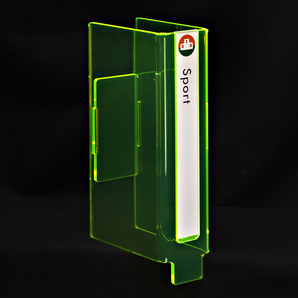 Bewegwijzering op het legbord, vervaardigd in een hoge kwaliteit glass-look of fluorescerend neon acryl.