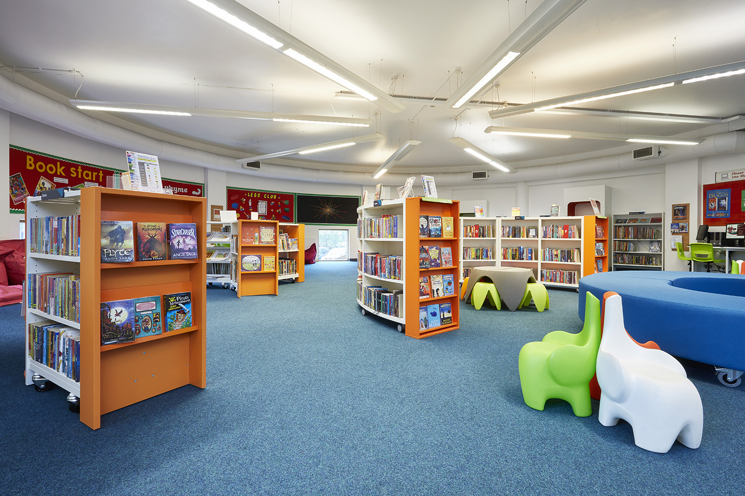 De nieuwe kinderafdeling is een licht- en kleurrijke ruimte geworden waar kinderen tijd kunnen doorbrengen op de stoeltjes in dierenthema, op het zachte zitmeubilair en in de Cocoon zitelementen, met hun neus in de boeken. Een opvallende stoel biedt de perfecte plek voor een voorleessessie en nodigt de ouders uit om samen met hun kinderen plaats te nemen en een goed boek te lezen.