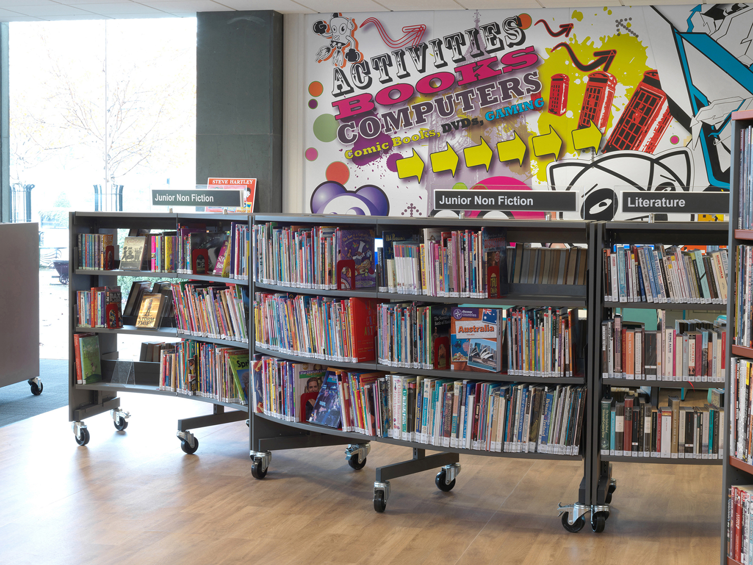 De schoonheid van tekeningen is dat ze eenvoudig en intuïtief worden begrepen door zowel kinderen als volwassenen. De mogelijkheden zijn eindeloos - van signalisatieborden naar legplank etiketten tot muurtekeningen - goed ontworpen en doordachte signalisatie kan een visuele impact creëren en een wow-effect geven aan uw bibliotheek.