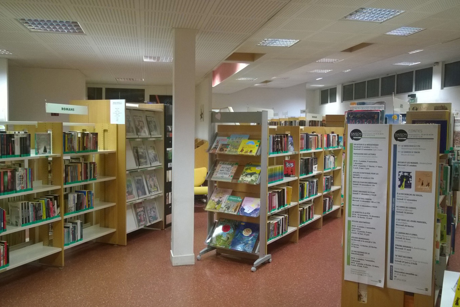 In de volwassenafdeling was de toegankelijkheid van boeken en media-items voor verbetering vatbaar en werden de vaste boekenbakken vervangen door uitschuifbare bakken. Dankzij die ingreep, in combinatie met standaard, vaste boekenbakken, konden de boeken dichter bij elkaar geplaatst worden en werd zo ruimte gemaakt voor bijkomende boeken.