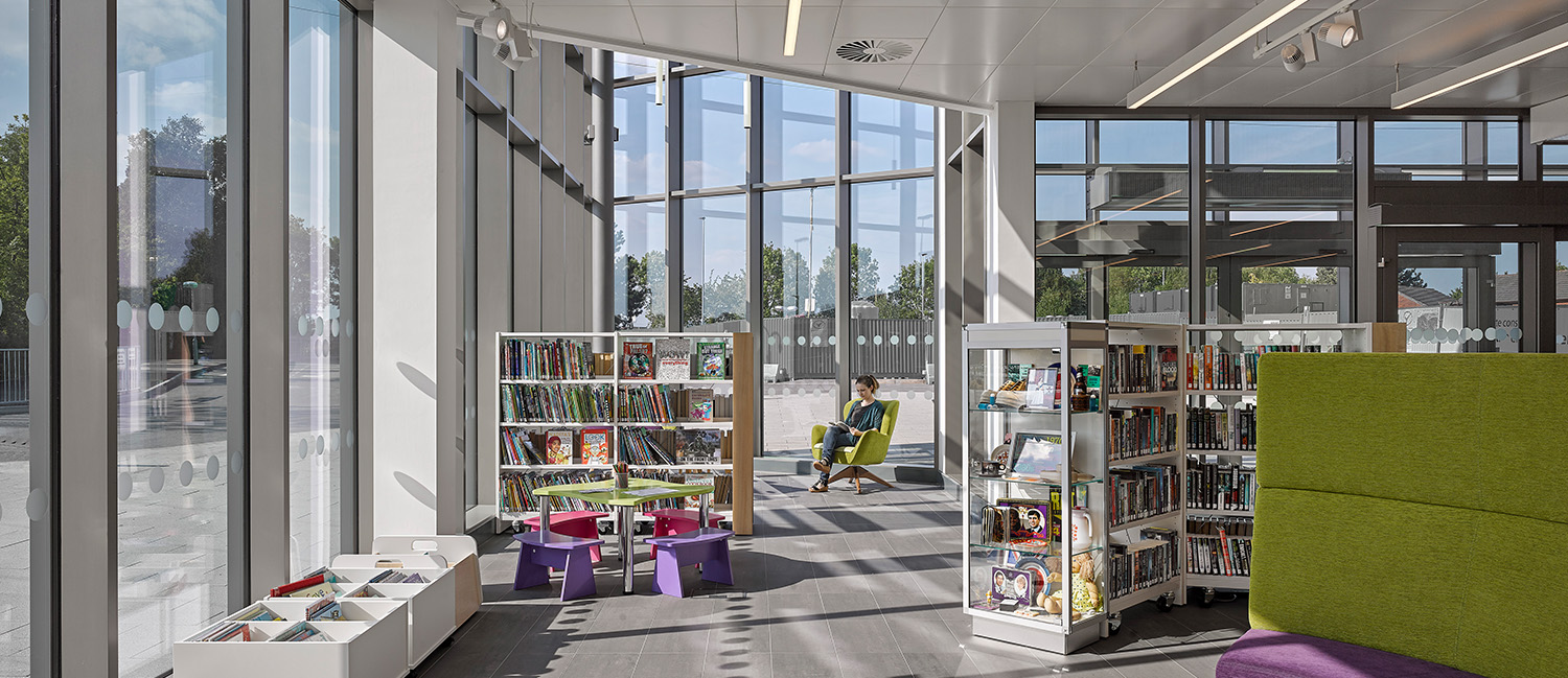 Het Great Sankey Neighbourhood Hub in Warrington, is waarschijnlijk het eerste volledig geïntegreerde, dementievriendelijke welzijnsgebouw en openbare bibliotheek in het Verenigd Koninkrijk.