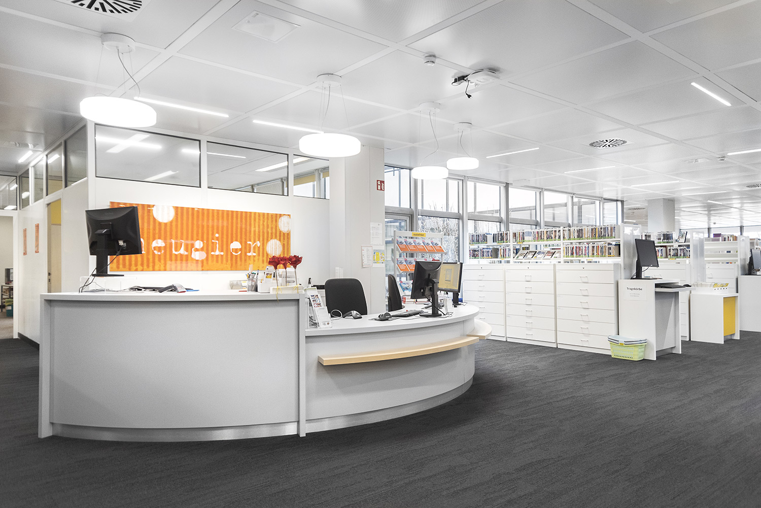 Een interieurontwerp met functioneel en ergonomisch meubilair maakt het leven in de bib voor zowel de medewerkers als de kinderen en jongeren eenvoudiger. Onze balies en zoekstations zijn beschikbaar in uiteenlopende formaten en vormen, en bieden bibliotheekmedewerkers en leerkrachten vlot toegang tot de leerlingen, zodat zij gemakkelijk bij hen terechtkunnen voor hulp en begeleiding. Ons gamma omvat in hoogte verstelbare stations en grote onthaalbalies, op maat van de uiteenlopende behoeften van de bibliotheekmedewerkers.