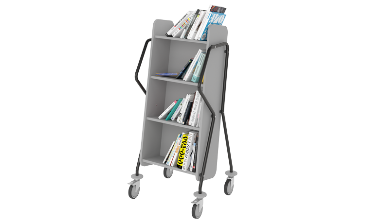 Boekenwagens zijn praktische hulpmiddelen om ingeleverde boeken en andere items te verplaatsen. Plaats boekenwagens bij inleverbalies en -boxen, zodat de boeken na ontlening weer vlot op hun plaats in het rekkensysteem terechtkomen.