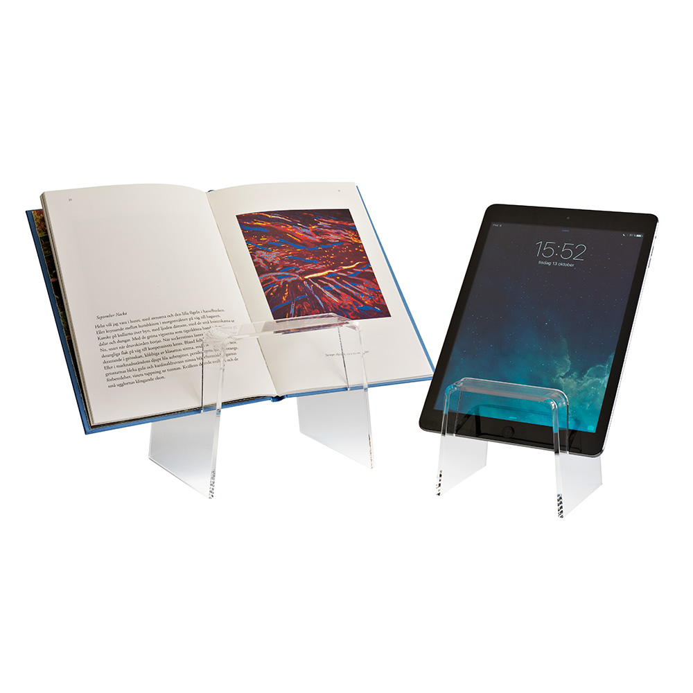 Het transparante acryl maakt het mogelijk om alle tekst, ook al staat het geplaatst achter de voorkant van de houder, ongeacht of het om een boek of een Tablet/iPad gaat, te lezen.
