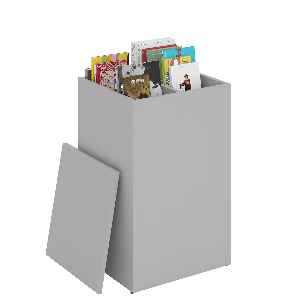 Het podium heeft een afneembare bovenplaat en handige onderverdelingen waarmee het bovenste gedeelte kan worden verdeeld in 2-4 compartimenten, afhankelijk van de mediagrootte.