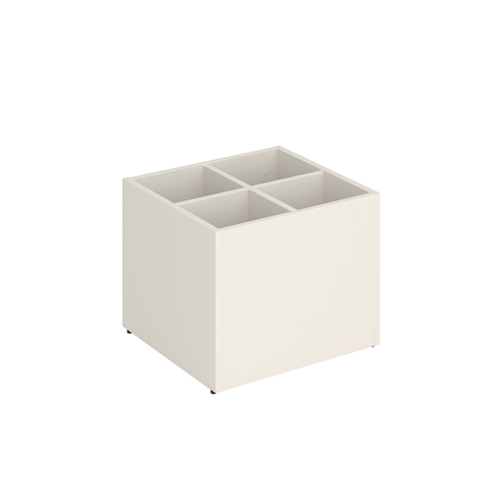 Het podium heeft een afneembare bovenplaat en handige onderverdelingen waarmee het bovenste gedeelte kan worden verdeeld in 2-4 compartimenten, afhankelijk van de mediagrootte.