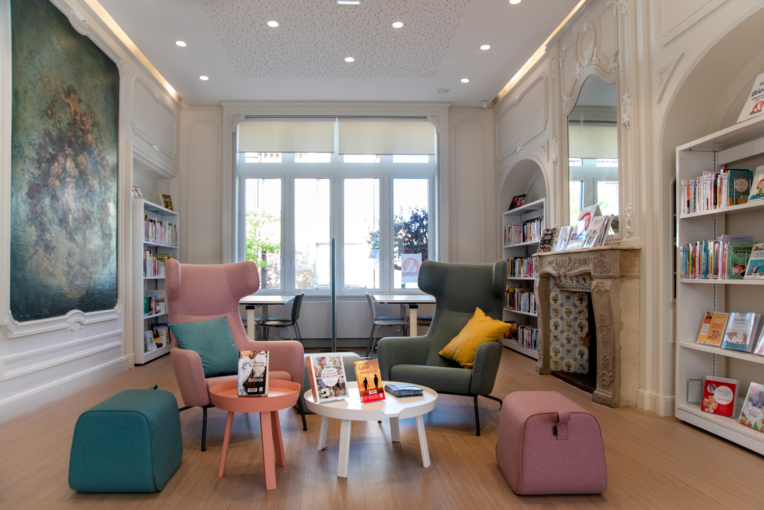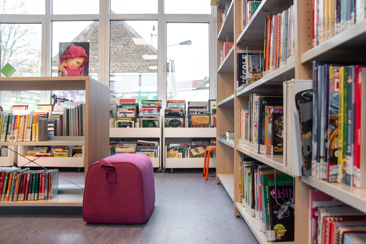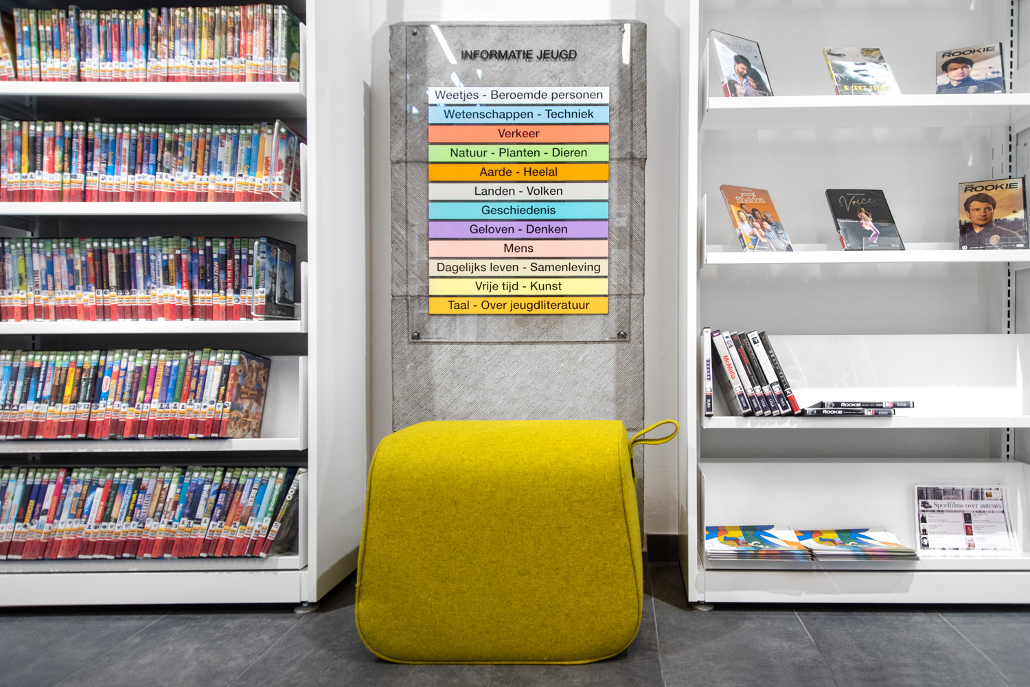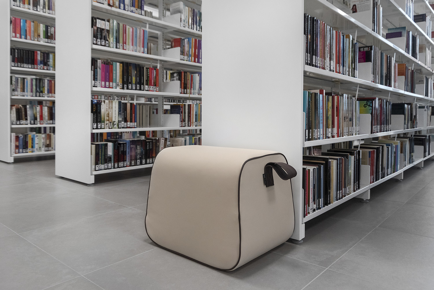 De poef kan worden gebruikt als extra zitplaats of als accessoire voor andere bibliotheekmeubels, maar ook als een enkel designelement.