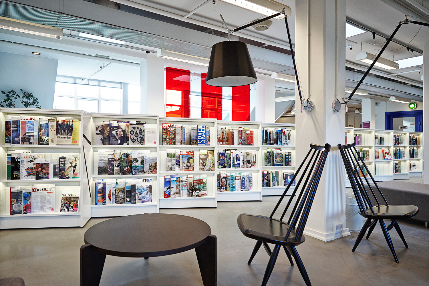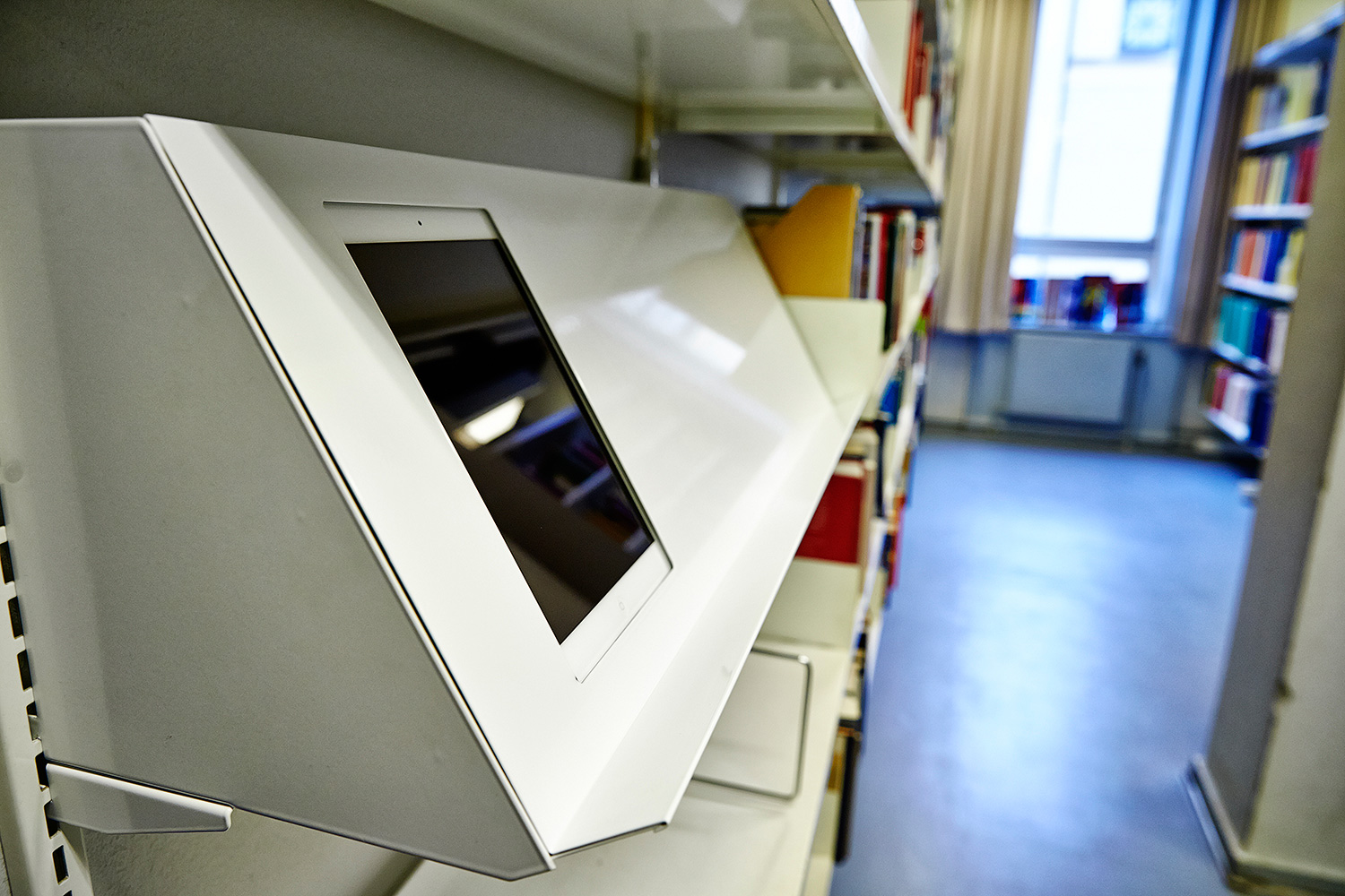 Het resultaat: een topbibliotheek waar technologie en bibliotheekmeubilair samengaan. Zo werden bijvoorbeeld touchscreens in de zijwanden geïntegreerd en LED-lichten voorzien in de presentatierekken.