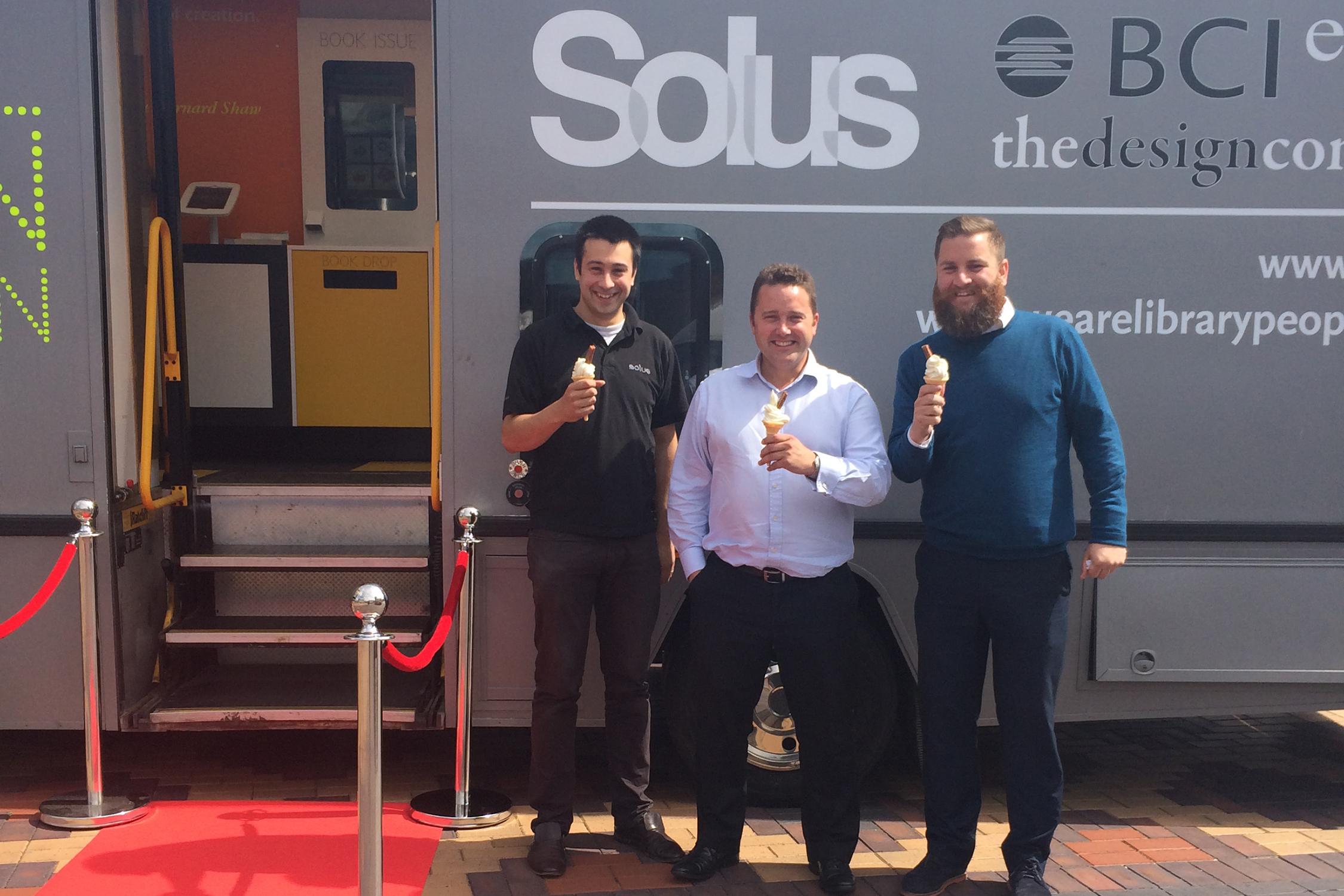 In de bus krijgt u ook ijs aangeboden! Een ijsjesmachine is gemonteerd op de mobiele bus om zo de klanten te verleiden om aan boord te komen.