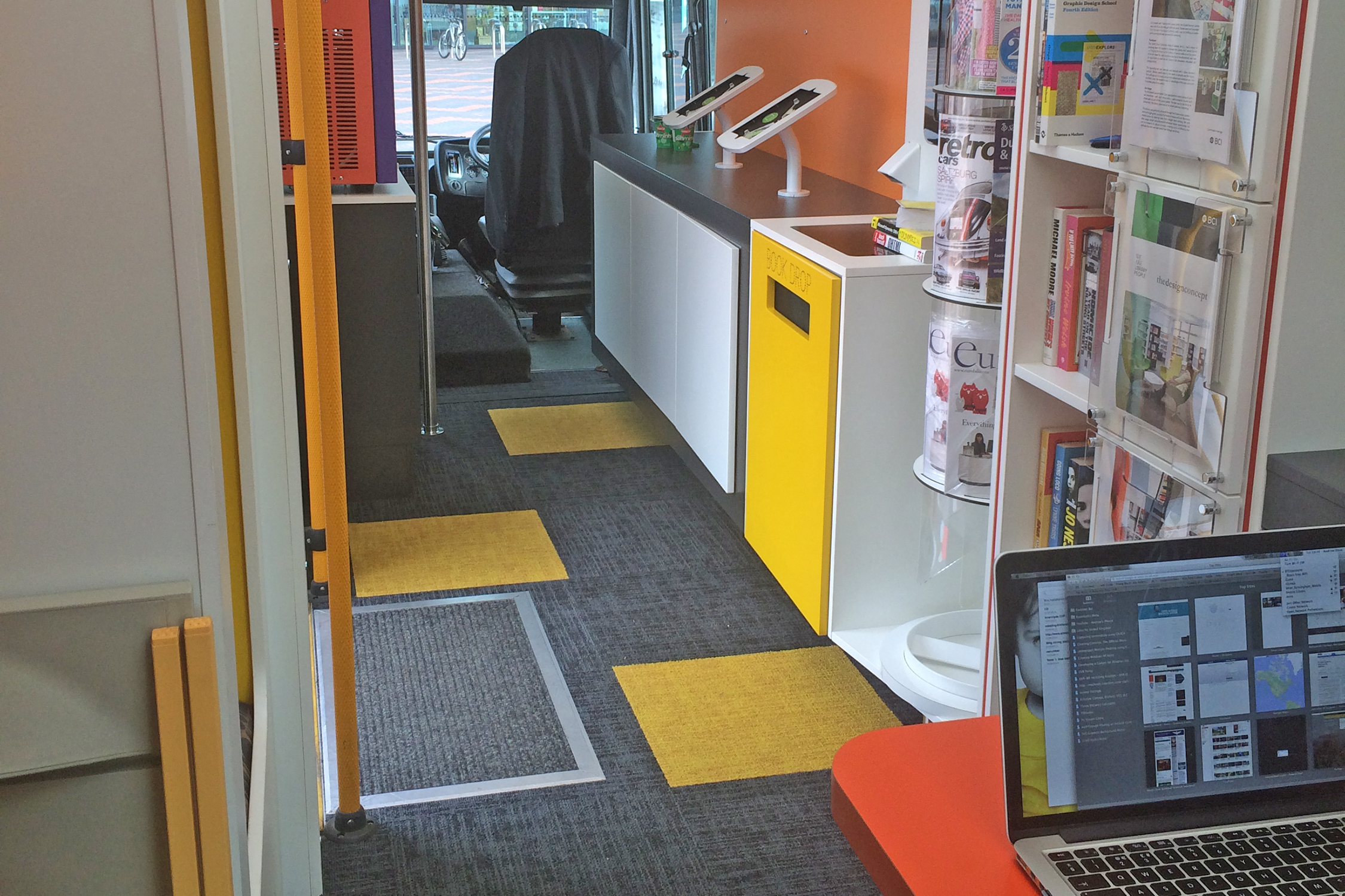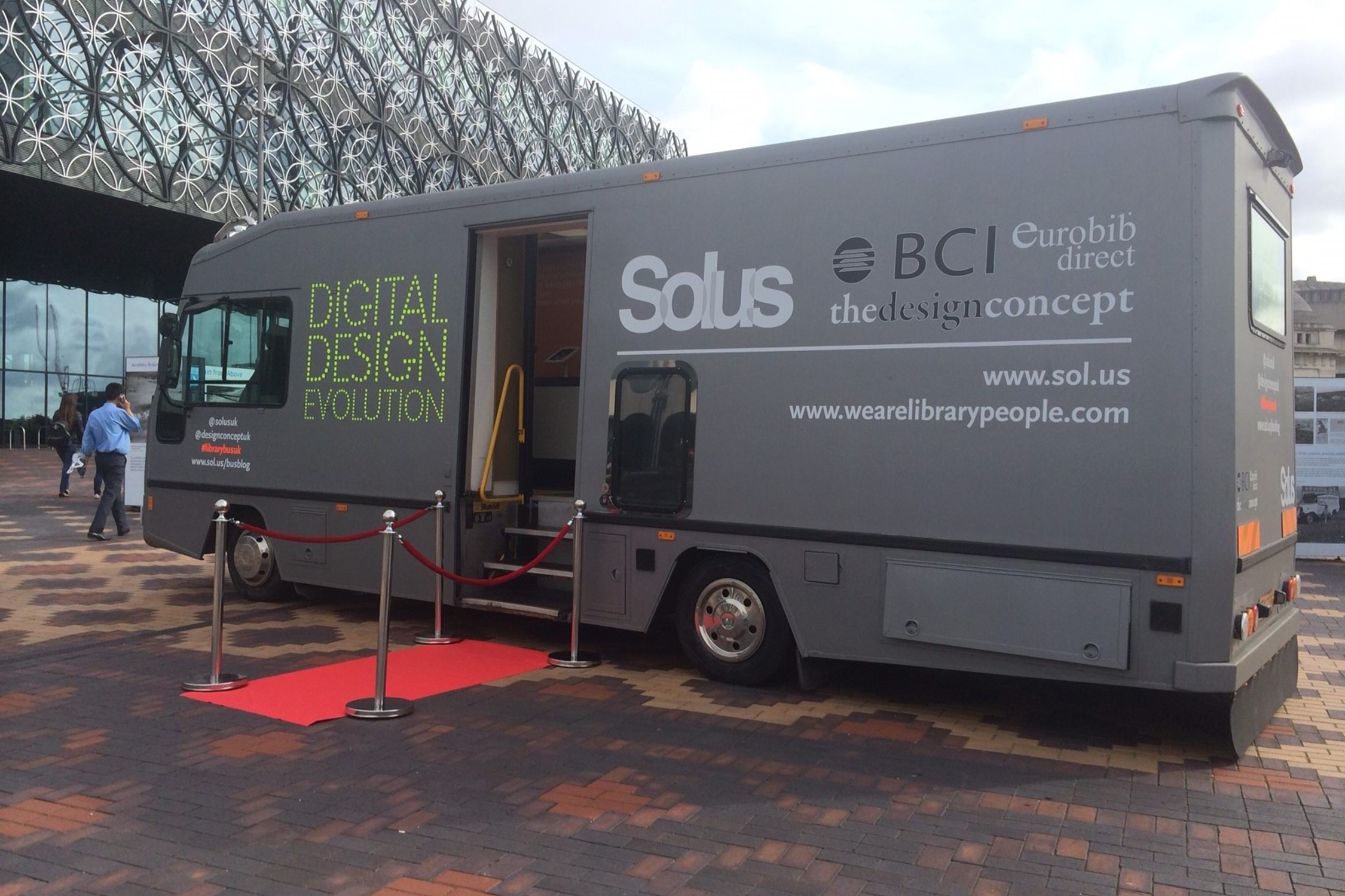 Stap aan boord en ontdek de toekomst van de bibliotheken! De bibliotheekbus is voorzien van een mengsel van producten uit het gamma van Eurobib Direct; Turbino en Cubes evenals Cocoon samen met 60/30 Classic Steel rekken. Het idee is om onze producten en ons design in combinatie met geïntegreerde digitale technologie van Solus rechtstreeks naar onze klanten te brengen.
