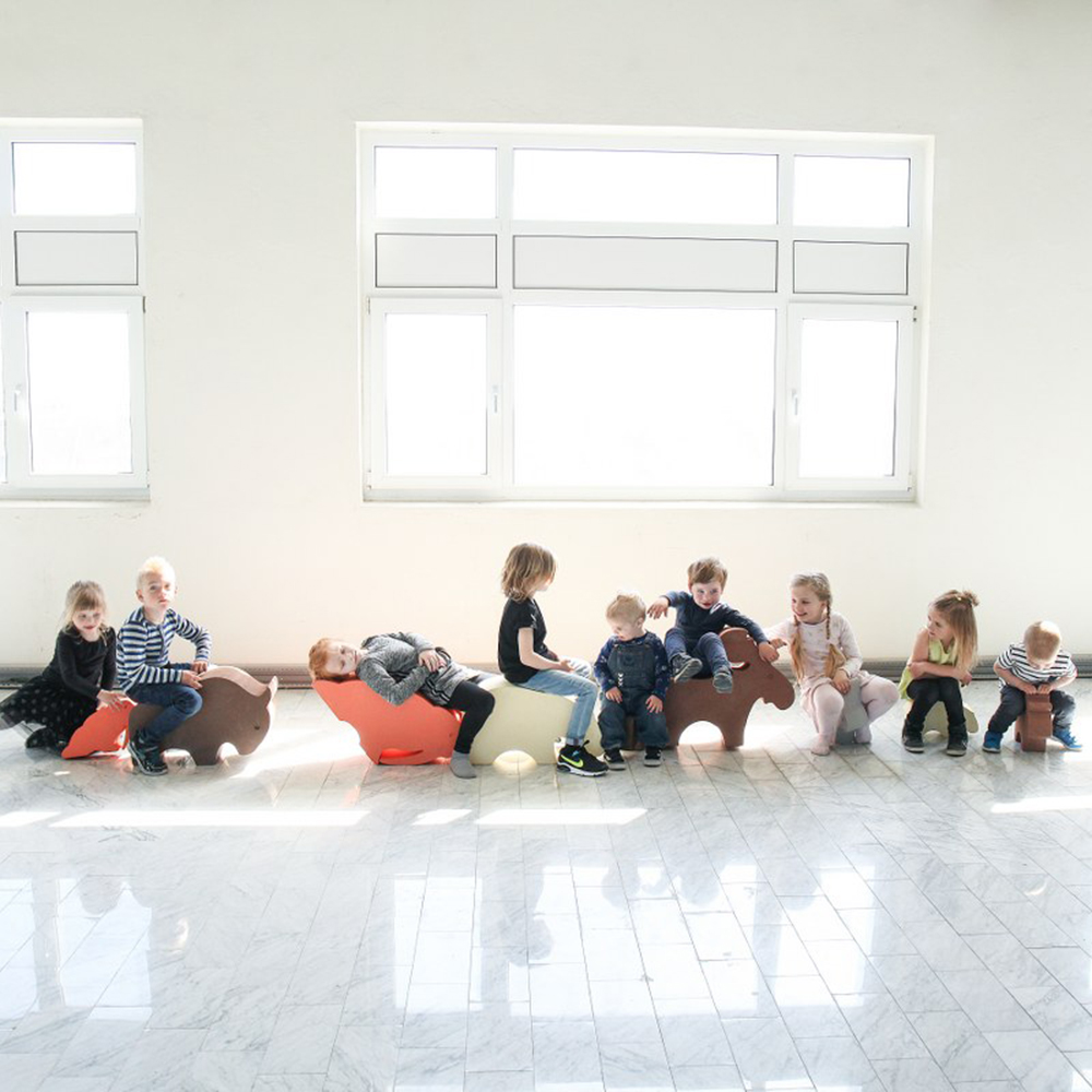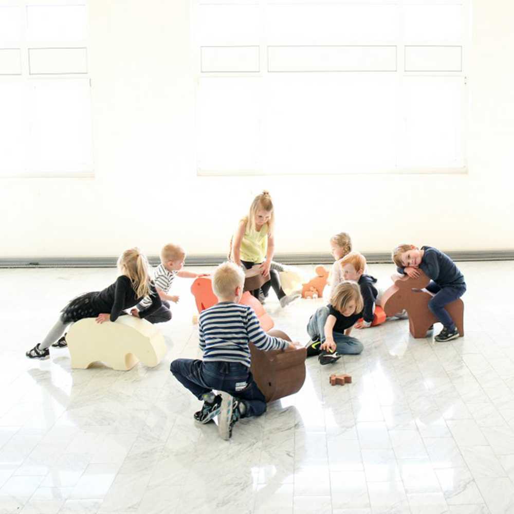 Kinderen leren meer over de dieren in het wild in Noordse landen en verbeteren hun motoriek tijdens het zitten, kruipen of staan op deze schattige dieren.