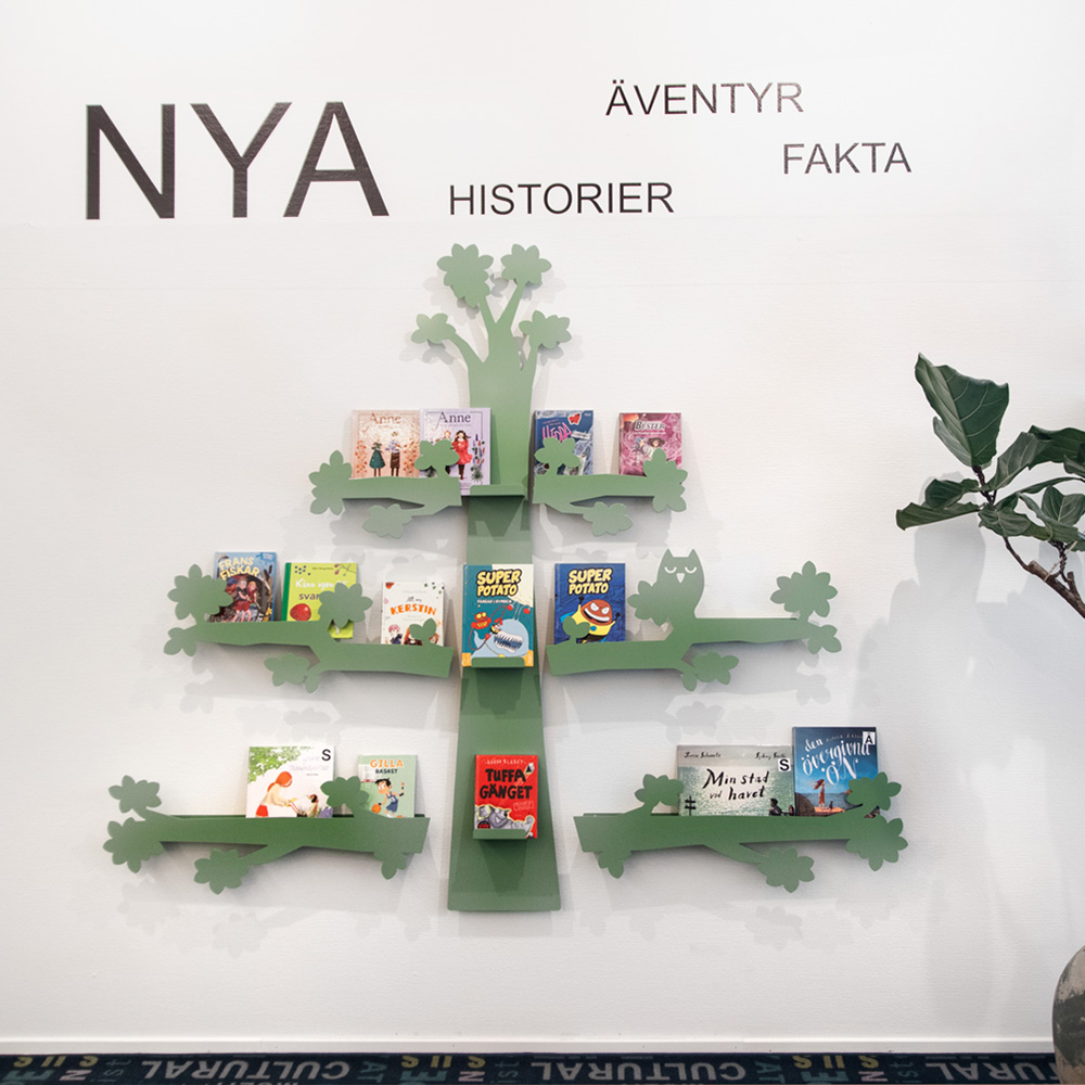 Displays voor boeken en andere media die zowel decoratief als nuttig zijn. Muurdisplay voor frontale presentatie van boeken.