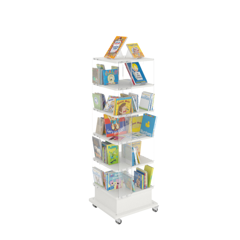 Wij raden aan om alle boeken te verwijderen wanneer u de boekentoren op het onderstel met wielen wil plaatsen, anders bestaat de kans dat de onderdelen, die vervaardigd zijn uit acryl, zullen breken.