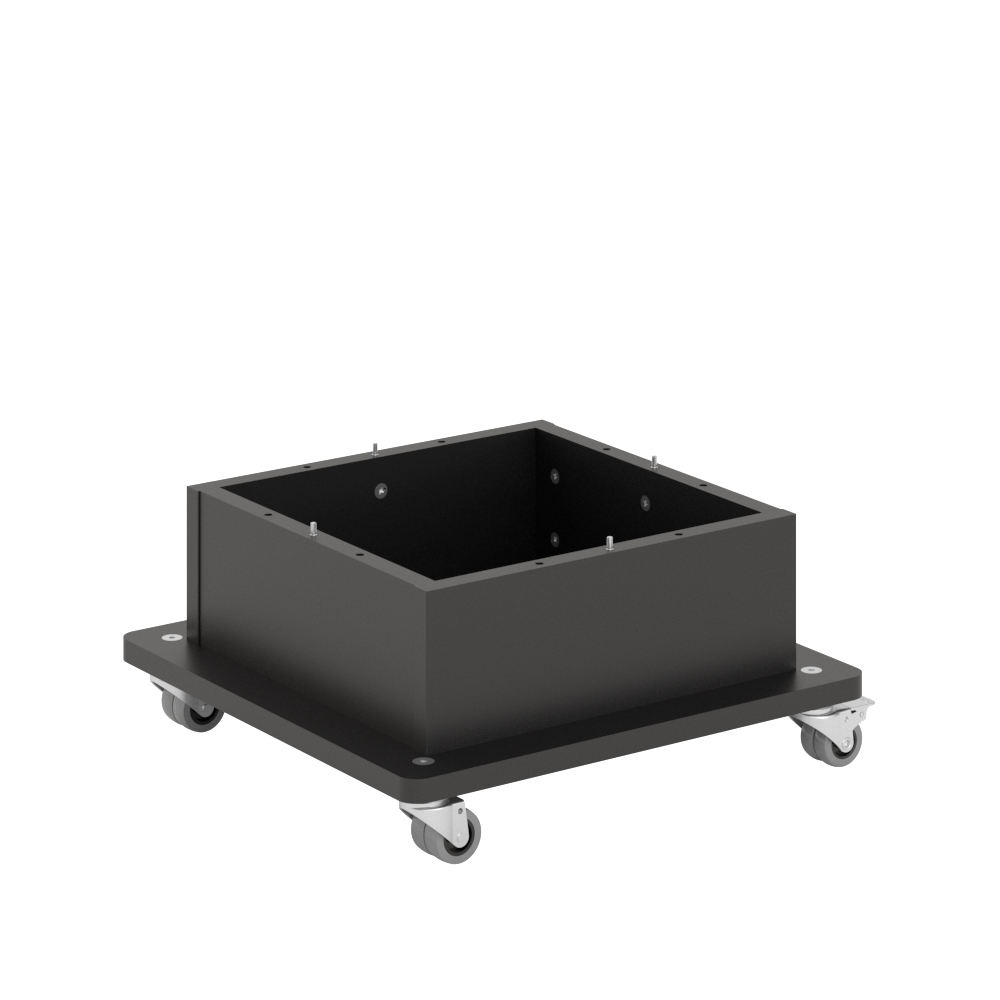 Dankzij de constructie van dit onderstel is de hoogte van de boekentoren met het onderstel eronder gemonteerd en de standaard uitvoering zonder wielen, dezelfde.