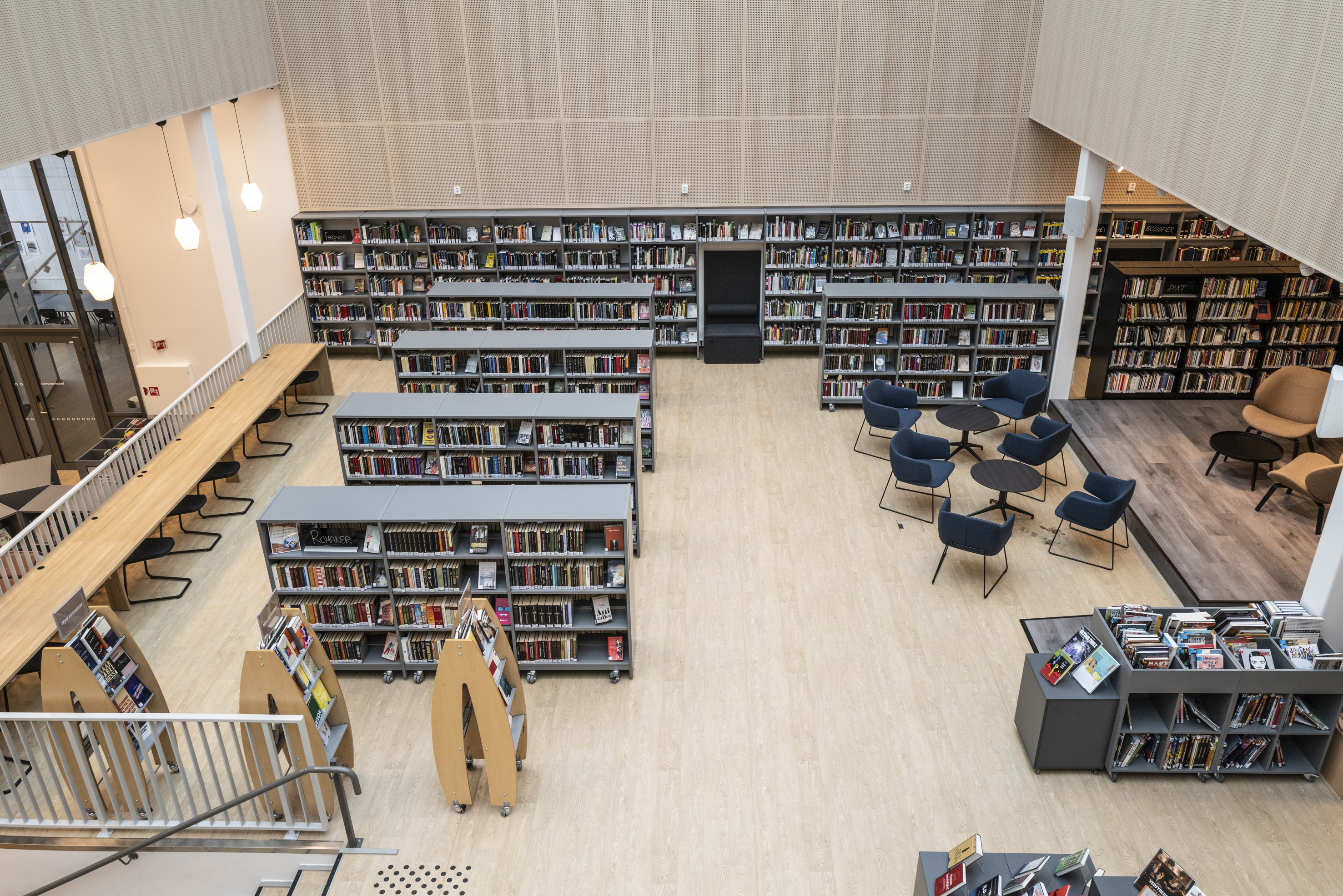 Tegenwoordig draait alles om ervaringen, en ook de bib is vandaag een plek waar mensen elkaar ontmoeten, met elkaar in gesprek treden, hun digitale vaardigheden aanscherpen, ideeën opdoen en de wereld ontdekken. Lammhults Biblioteksdesign A/S is een dynamische leverancier van totaaloplossingen voor de inrichting van bibliotheken en openbare ruimtes. We zijn continu in de weer om vandaag al de bibliotheken van morgen in te richten, op maat van individuele vereisten qua vormgeving en ontwikkeling. We werken nauw met jou en je gemeenschap samen om tot aangename en functionele ruimtes te komen. Verrassende concepten die de inspiratie prikkelen. Omgevingen waar mensen samenkomen en met elkaar in dialoog treden. Ruimtes die allesbehalve saai zijn, waar mensen leren, lezen, ontspannen en spelen.