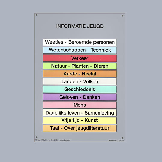 Poster bedrukt met de 12 hoofdrubrieken.