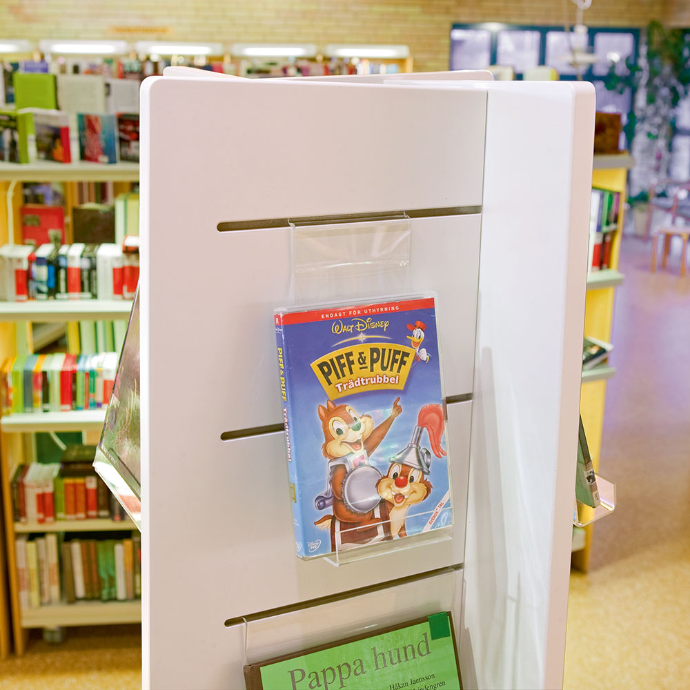 De displays zijn makkelijk te verplaatsen en bieden zo een flexibele oplossing voor de presentatie van boeken, cd’s en dvd’s, tijdschriften, brochures enz.