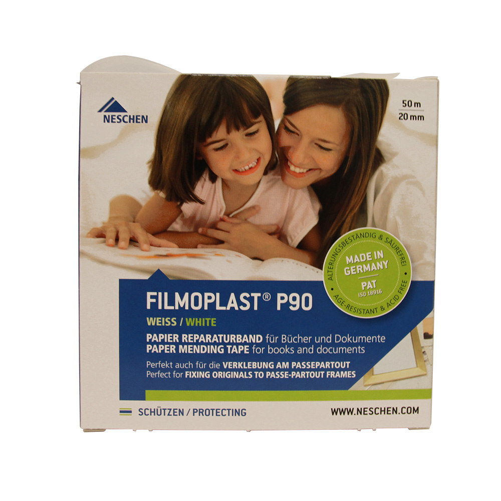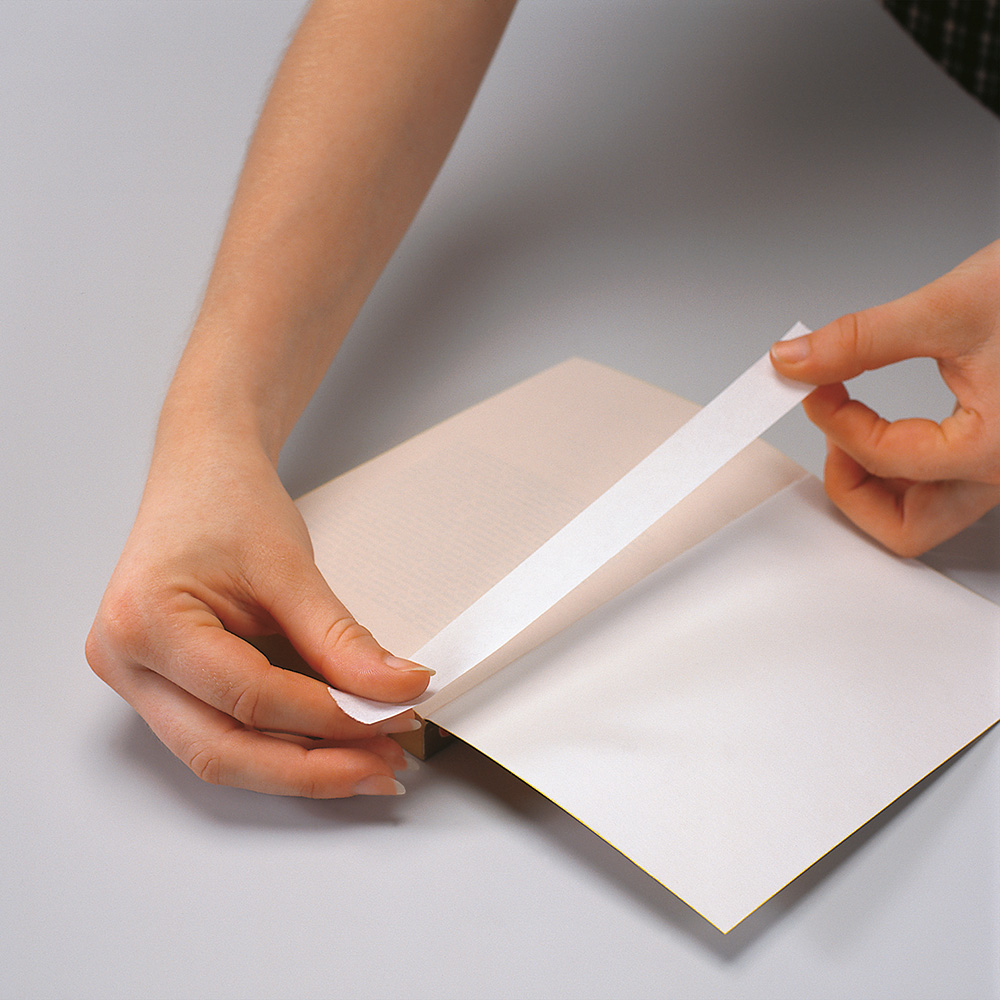 Voor het herstellen van beschadigde bladranden, het inplakken van losgelaten katernen en het verstevigen van de binnenzijde van de boekscharnier. Wit, zelfklevend speciaalpapier, houtvrij. Om zuurinwerking te voorkomen is calciumcarbonaat toegevoegd. Voorzien van een oplosmiddel-vrije PH - neutrale, ouderdomsbestendige acryllijmlaag.