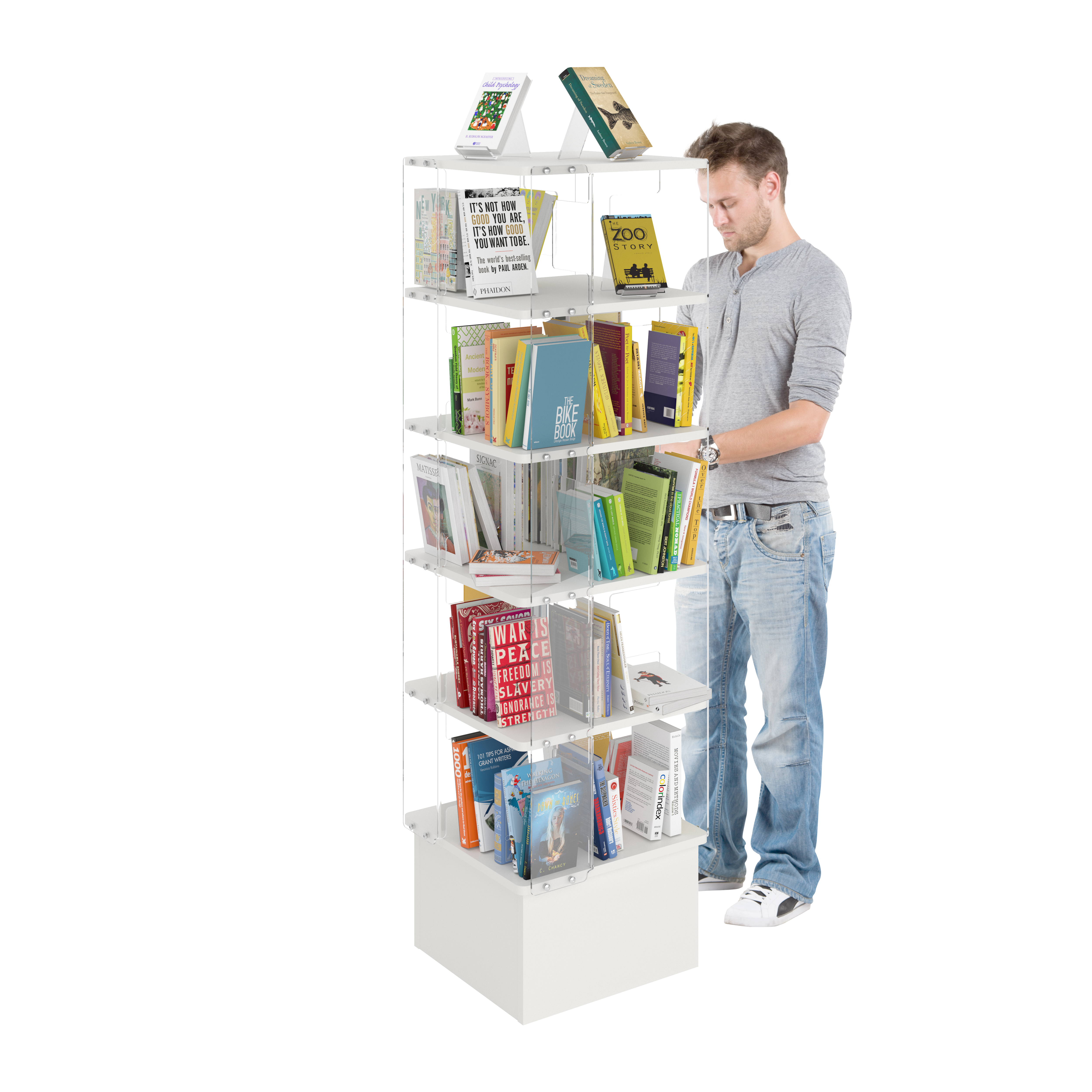 Book Tower is de perfecte oplossing voor het zichtbaar en aantrekkelijk presenteren van boeken.