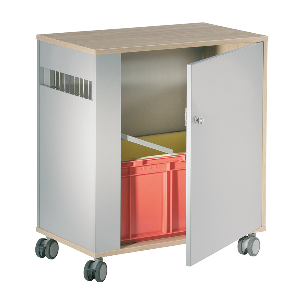 Mobiele inleverbox met een afsluitbare zijkant, voor een gemakkelijke toegang tot de terug gebrachte boeken.