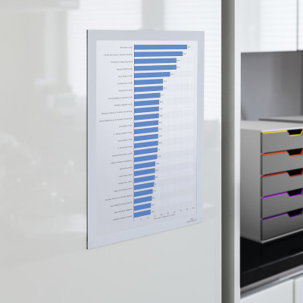 Deze zelfklevende documenthouders (Duraframe®) zijn ideaal voor montage op gladde oppervlakken zoals ramen, deuren, zijwanden van een boekenrek, ...
